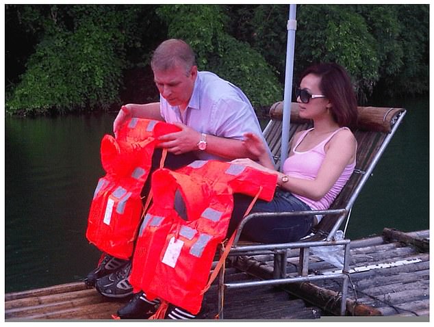 Na foto: Andrew curtindo um passeio em uma jangada de bambu enquanto estava na China em uma foto divulgada nos Arquivos Epstein