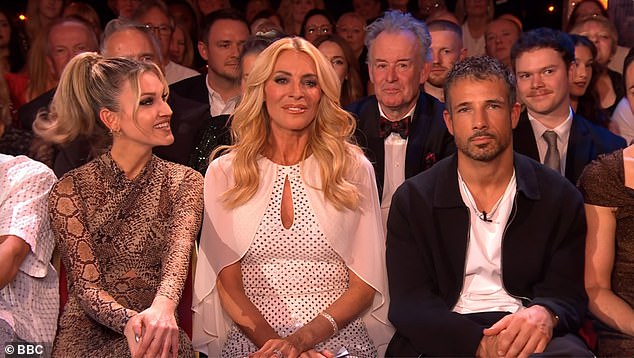 Tess foi a primeira a cometer um deslize, ao falar com a ex-finalista do Strictly, Ashley Roberts, na plateia, dizendo que se apresentaria ‘mais tarde’