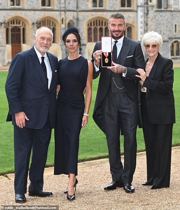 Victoria e Sandra Beckham observaram com orgulho quando David recebeu seu título de Cavaleiro do Rei em Windsor na terça-feira – ao mesmo tempo que pareciam incrivelmente chiques