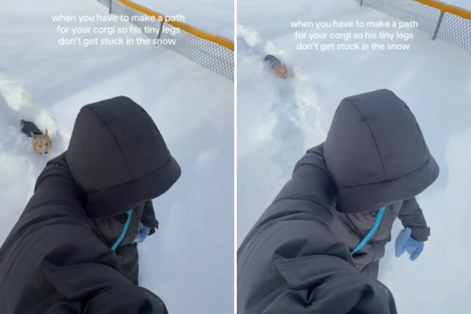 Um vídeo viral mostra o dono de Crumpet abrindo um caminho estreito na neve para não ficar preso, enquanto o corgi pula alegremente atrás. Apesar da profundidade da neve, Crumpet parecia imperturbável, ganhando mais de 150 mil visualizações no Instagram.