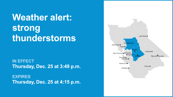 Estreito e Delta de Carquinez, Vale do Sul de Sacramento e Vale do Norte de San Joaquin estão incluídos em um alerta meteorológico atualizado para fortes tempestades do Serviço Meteorológico Nacional na quinta-feira às 15h49.
