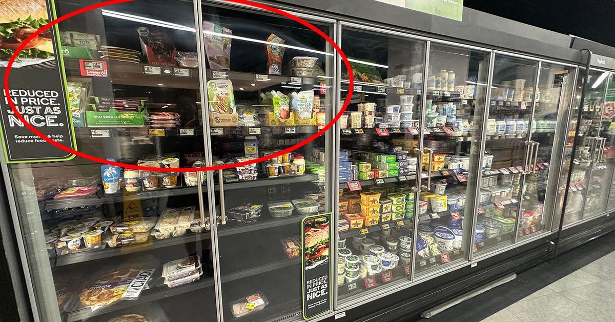 Um metrô Woolworths no norte de Sydney, que possui vários refrigeradores de produtos de carne e queijo, tinha apenas quatro pequenas prateleiras de refrigeradores com alternativas à base de plantas.