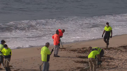 Equipes limpam misteriosas bolas de detritos de Coogee Beach. (Nove)