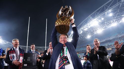 O famoso Caxton Hotel em Brisbane. (Nove)O presidente do Roosters, Nick Politis, segura o Troféu NRL Premiership durante a partida da Grande Final da NRL 2019 entre o Canberra Raiders e o Sydney Roosters no ANZ Stadium em 06 de outubro de 2019 em Sydney, Austrália. (Foto de Matt King/Getty Images) (Getty)