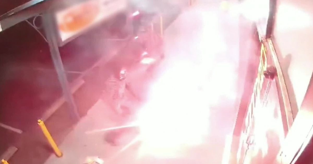 A explosão foi vista em câmeras CCTV do outro lado da estrada e ouvida a quilômetros de distância.