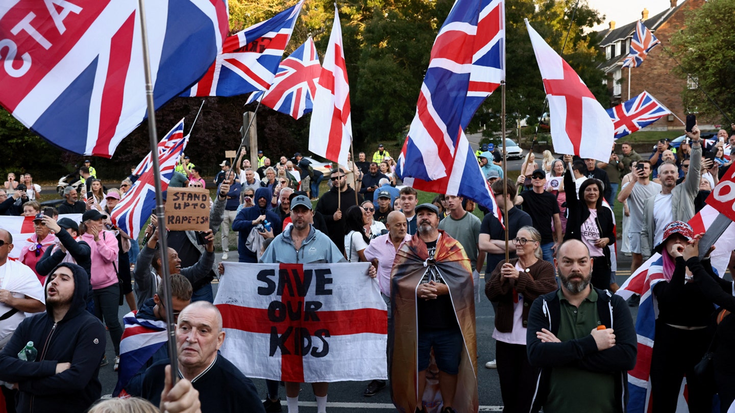 Sua prisão em julho desencadeou semanas de protestos em frente ao Bell Hotel em Epping, um alojamento para migrantes a cerca de 32 quilômetros ao norte de Londres, segundo o relatório.