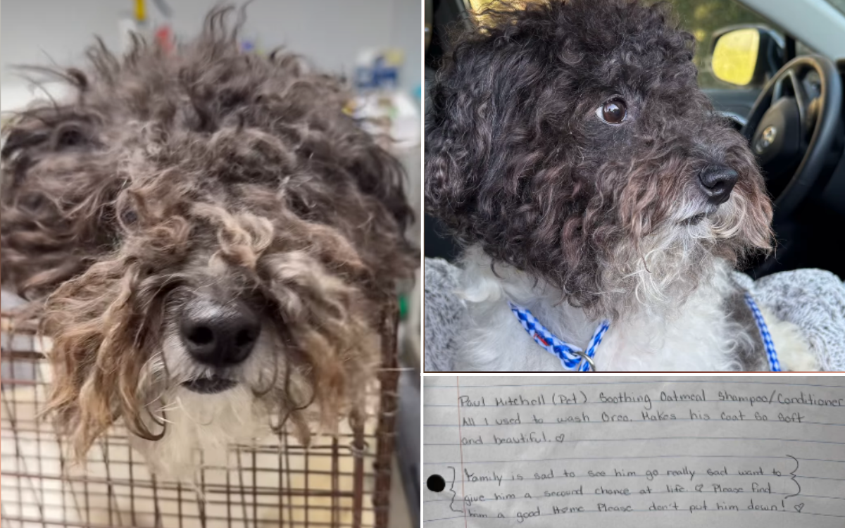 “Voluntários e funcionários do abrigo nos ligaram depois que seu proprietário anterior o deixou com um bilhete gentil”, disse Rosen à Newsweek. “Eles estavam se mudando e não conseguiram mantê-lo.”