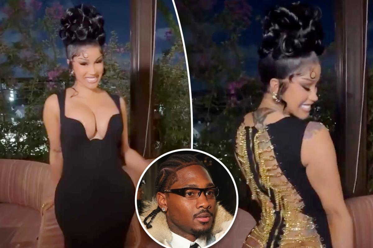 Em um vídeo compartilhado nas redes sociais na noite de sexta-feira, Cardi exibiu seu look completo, exibindo sua figura curvilínea no conjunto médio.