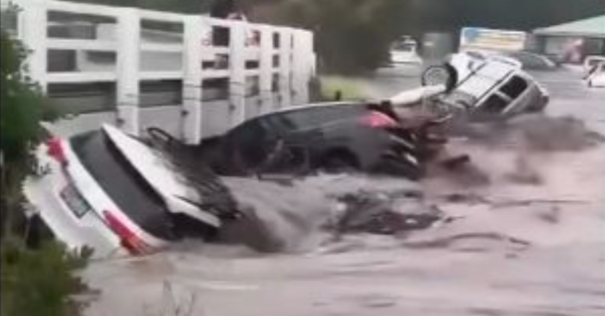 Um emergência alerta foi emitido quando uma enchente repentina inundou um local popular Vitoriano hotspot de férias, com carros levados para o mar.