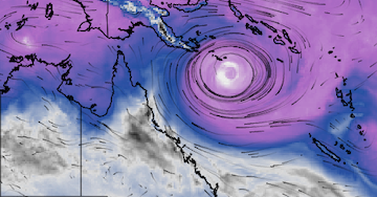 “Há indicações iniciais de que o sistema de baixa pressão do Hemisfério Sul poderá intensificar-se sobre o quente norte do Mar de Coral, onde as temperaturas da superfície do mar estão atualmente entre 28 e 30 (graus), possivelmente tornando-se um ciclone tropical no meio ou no final da próxima semana.