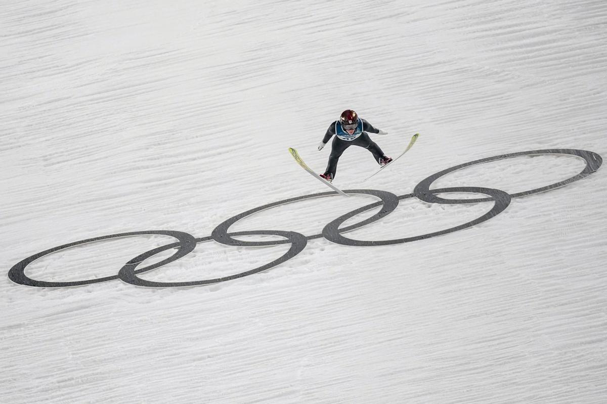 Um saltador de esqui nos Jogos Olímpicos de Inverno de 2026. PA