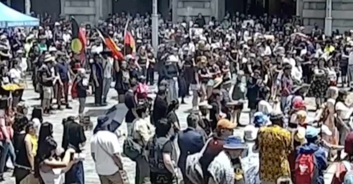 O organizador do comício do Dia da Invasão, Fabian Yarran, disse ao 9News que eles estão felizes por as autoridades terem chegado lá no final.