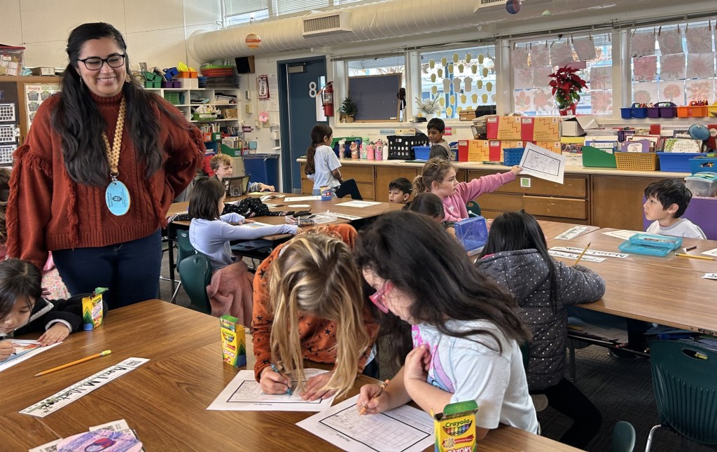 Banuelos pediu a seus alunos da Pueblo Vista Elementary de Napa que imaginassem um lugar tranquilo ou seguro para onde pudessem se refugiar quando se sentissem frustrados ou sobrecarregados. Ela estava ensinando-lhes a “Ferramenta de Lugar Silencioso/Seguro”, uma das 12 estratégias socioemocionais destinadas a ajudar as crianças a enfrentar os desafios diários.