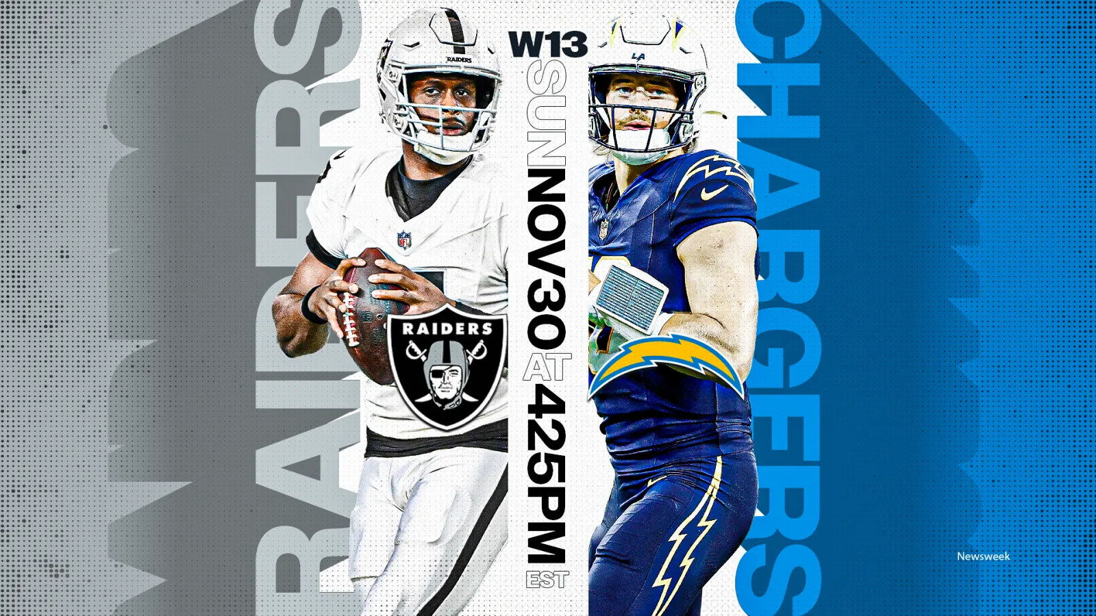 Os Chargers chegam com 7–4, saindo de uma semana de folga e tentando manter viva sua pressão nos playoffs. Seu ataque, liderado pelo quarterback Justin Herbert e armadores como Keenan Allen e seu backfield, teve média de 22,4 pontos por jogo nesta temporada. Na defesa, Los Angeles tem sido oportunista, gerando sacks e reviravoltas em casa, o que pode significar problemas para um ataque dos Raiders já assolado por inconsistência e má proteção.