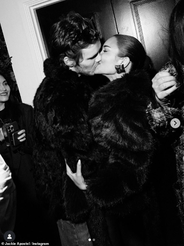 Ela também acessou seu próprio Instagram para postar uma foto ainda mais íntima que mostrava o casal se beijando apaixonadamente enquanto usava casacos de pele combinando, com a legenda: ‘para o seu amor’.