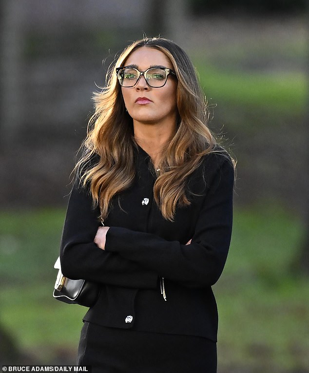 Hannah Greenhalgh, viúva apenas três meses após seu casamento em Las Vegas com o piloto da Ryanair Matt Greenhalgh, fotografada do lado de fora da audiência anterior no Tribunal de Magistrados de Warrington