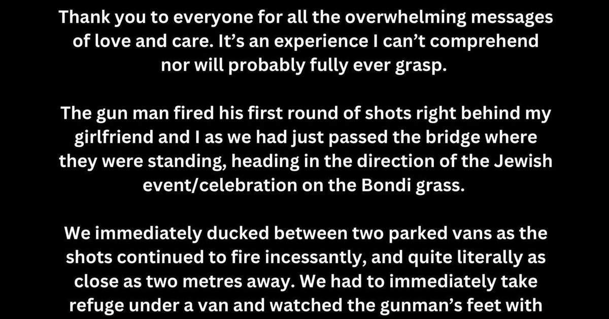 Histórias de medo e coragem continuam a surgir de testemunhas do horrível tiroteio em massa de Bondi, que ceifou a vida de 15 inocentes.