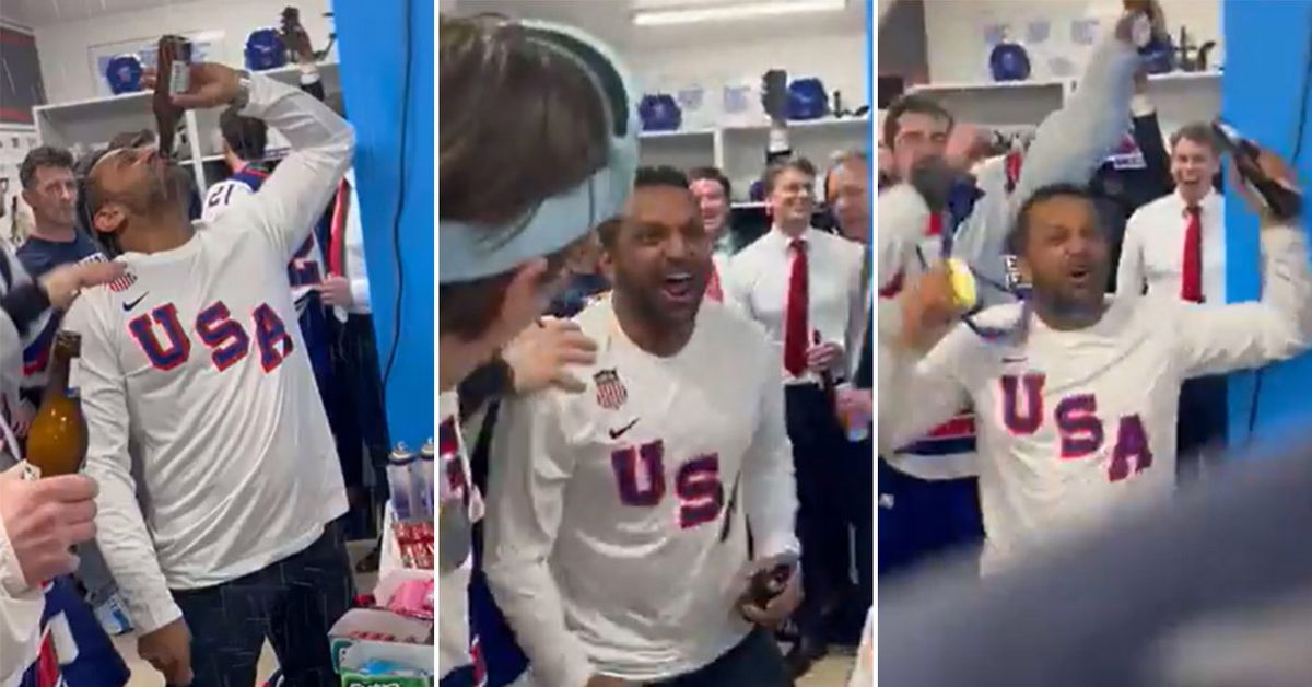A filmagem também mostra ele espalhando cerveja pela sala enquanto comemorava com a equipe.