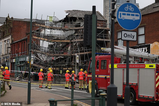 Um porta-voz do Serviço de Bombeiros e Resgate da Grande Manchester (GMFRS) disse: ‘Por volta das 12h40 desta tarde, três carros de bombeiros de toda a Grande Manchester foram chamados para um incidente envolvendo um edifício parcialmente desabado na King Street, Oldham.