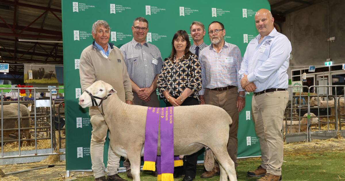 O Codji Springs White Suffolk Stud, Pumphreys Bridge, exibiu o Grand Champion Meat Raeds Ewe. With the ewe were Codji Springs stud principals Courtney and Ryan Marwick and daughters Kaylee and Asha with judges Will Milroy, Rangeview Poll Dorset stud, Pipers River, Tasmania, Anna Darke, Lincoln Downs Suffolk stud, Boyup Brook, Peter Angus, Maroola White Suffolk stud, Mallala, South Australia, Guy Bowen, Mount Ronan stud, York and Jason Oologhlin, Oologhlin Wiltshire Horn Stud, Blighty, Nova Gales do Sul. Imagem de Jodie Rintoul.