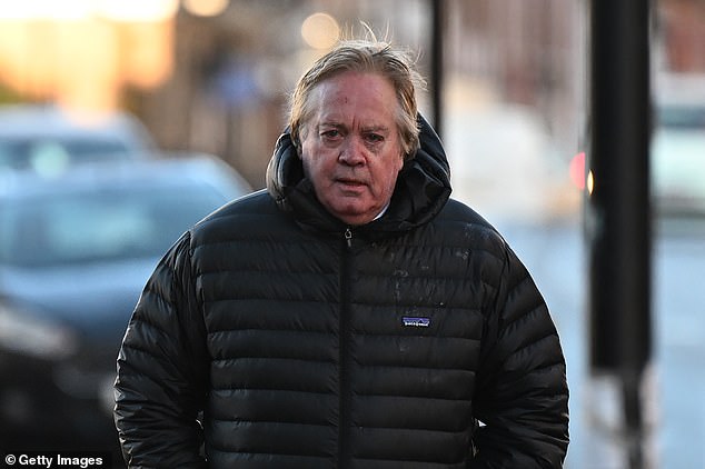 Ele foi fotografado chegando ao tribunal esta manhã vestindo um grande casaco preto.