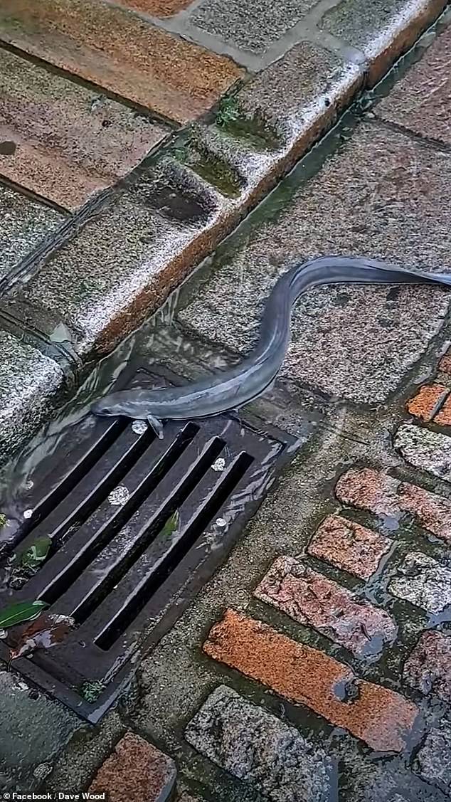 Eel está gostando da chuva, pelo menos! Peixe alongado é avistado em rua depois de nadar para fora da sarjeta em meio a chuvas torrenciais