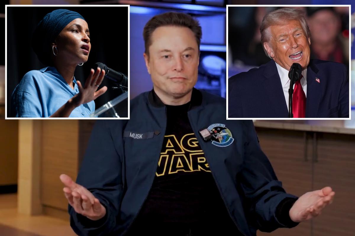 Elon Musk sugeriu na terça-feira que a deputada Ilhan Omar (D-Minn.) cometeu “traição” em comentários de janeiro de 2024 que seus críticos disseram colocar os interesses da Somália à frente dos americanos. X / @KatieMiller