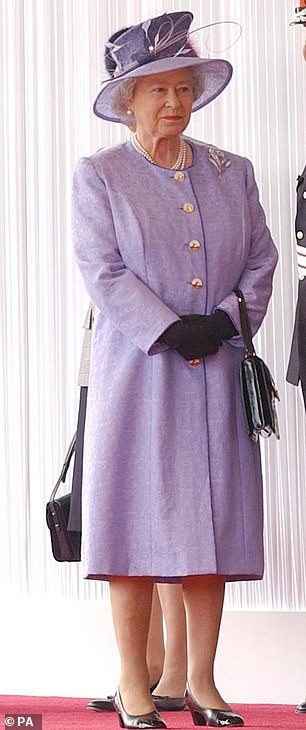 A Princesa de Gales (foto à direita) prestou homenagem à falecida Rainha (foto à esquerda em 2003) com sua escolha de roupa hoje, enquanto participava de uma recepção no Palácio de Buckingham para marcar o que teria sido o 100º aniversário de Elizabeth II.