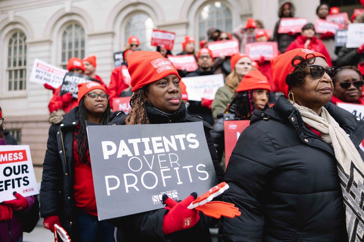 As enfermeiras da NYSNA realizaram uma série de manifestações no mês passado para destacar as más condições de trabalho e as preocupações de segurança nos hospitais de Nova York. O sindicato também criou um site, chamado NYC Hospital Greed, para divulgar as maneiras pelas quais as enfermeiras acreditam que os hospitais estão lucrando com os pacientes.