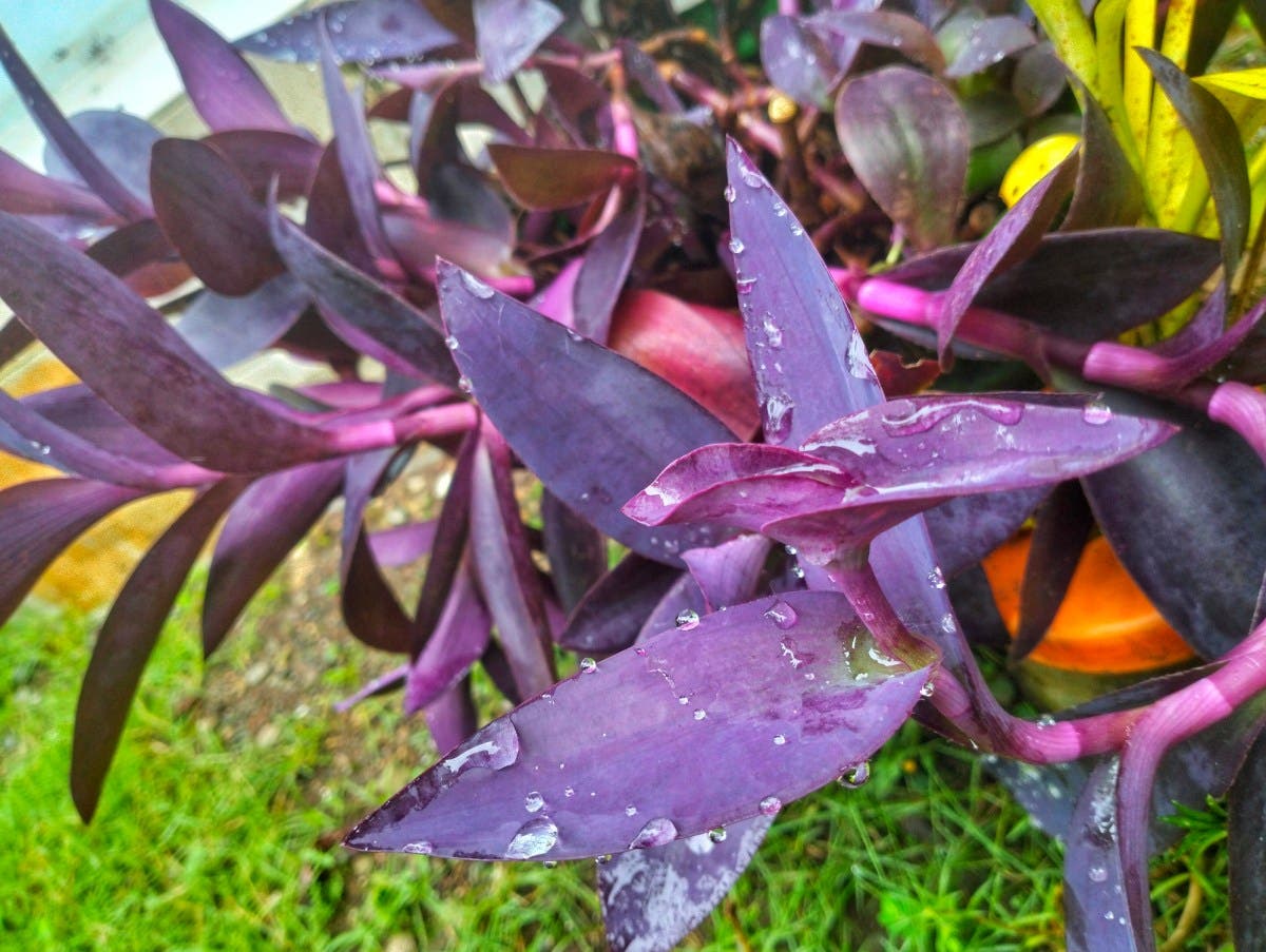 “Esta planta é uma Tradescantia pallida, comumente chamada de coração roxo ou rainha roxa. A razão pela qual pode ter gosto de cebola é que muitas plantas compartilham substâncias semelhantes em sua seiva, o que pode fazer com que alguns sabores pareçam semelhantes. No entanto, isso não significa que também sejam comestíveis!