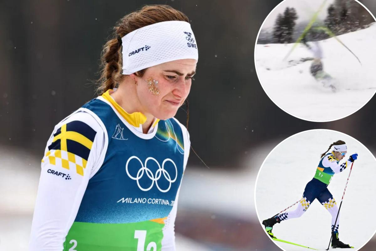 A Suécia desperdiçou sua chance de ganhar o ouro no revezamento 4 x 7,5 km feminino no sábado, quando Ebba Andersson caiu forte e foi forçada a correr com apenas um esqui por cerca de 30 segundos.