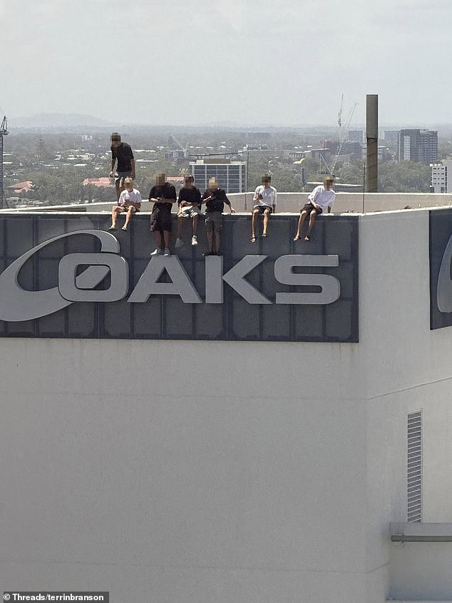 Um grupo de oito meninos é visto se equilibrando no topo do Oaks Gold Coast Hotel na sexta-feira