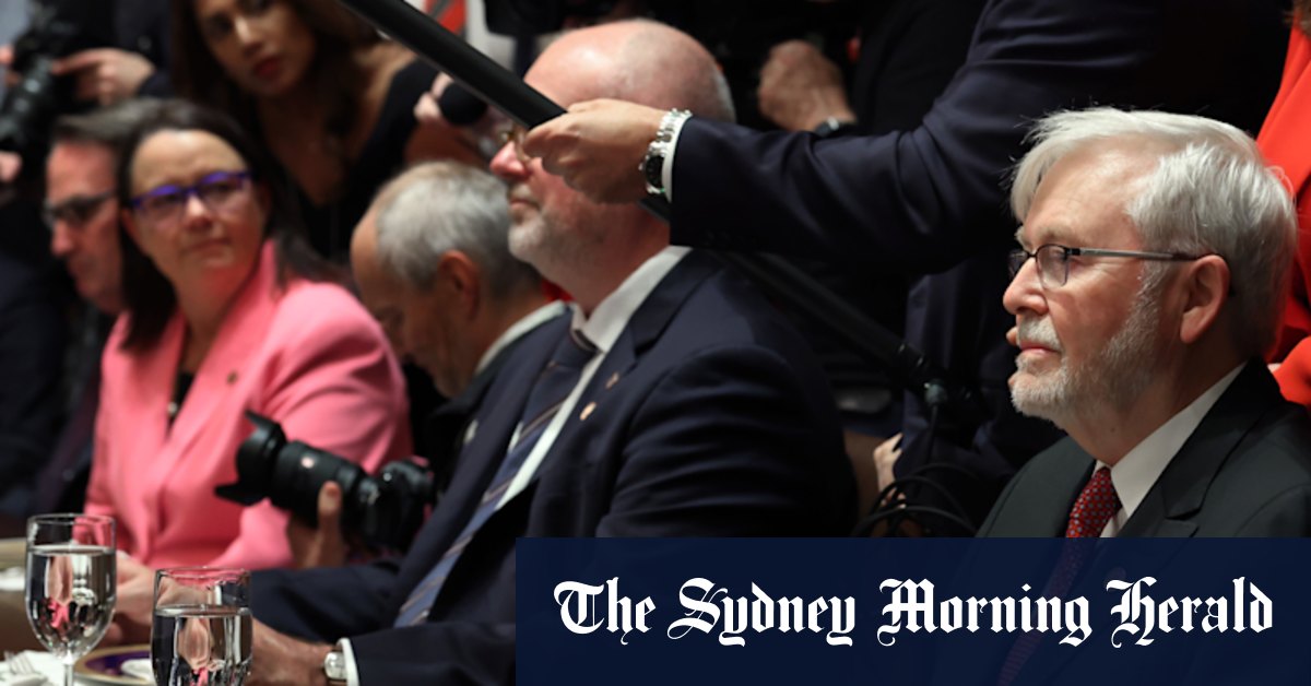 ALBANÊS apontou para Rudd no lado oposto da mesa, que disse que os seus comentários – nos quais também chamou Trump de “um traidor do Ocidente” – vieram antes de ele ocupar a sua posição atual como enviado da Austrália aos EUA.