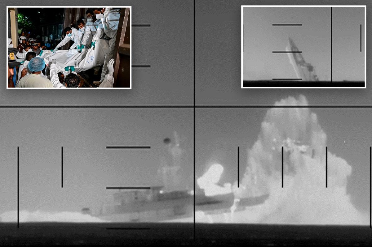 O vídeo divulgado pelo Pentágono parecia mostrar o navio sendo atingido por uma enorme explosão, que destruiu sua traseira. O impacto da explosão fez com que o navio se levantasse e começasse a afundar pela popa.