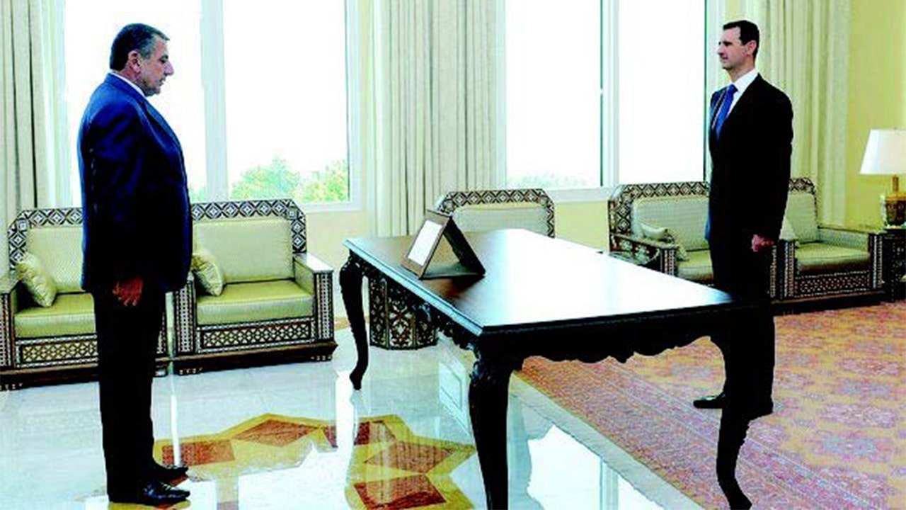 Uma foto de apostila mostra o ex-presidente sírio Bashar al-Assad, à direita, e Samir Ousman Alsheikh por volta de 25 de julho de 2011, quando Assad nomeou Alsheikh como governador de Deir ez-Zor. (Departamento de Justiça dos EUA)