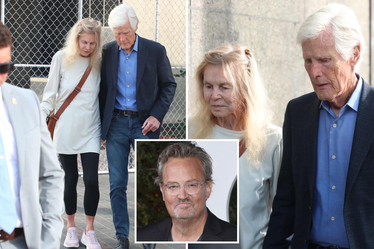 A mãe e o padrasto de Matthew Perry, Keith Morrison, chegam ao tribunal para a sentença da ‘Rainha da Cetamina’. David Buchan para o CA Post