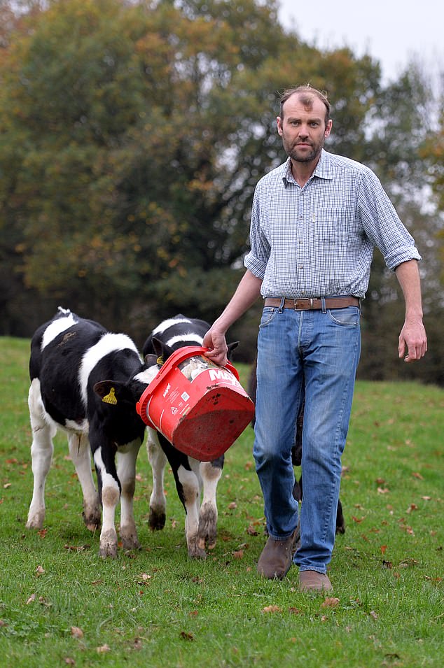 Jonathan Charlesworth, fotografado alimentando o gado na sua quinta, acusou o governo de “total falta de compreensão em relação à agricultura e ao campo em geral”.