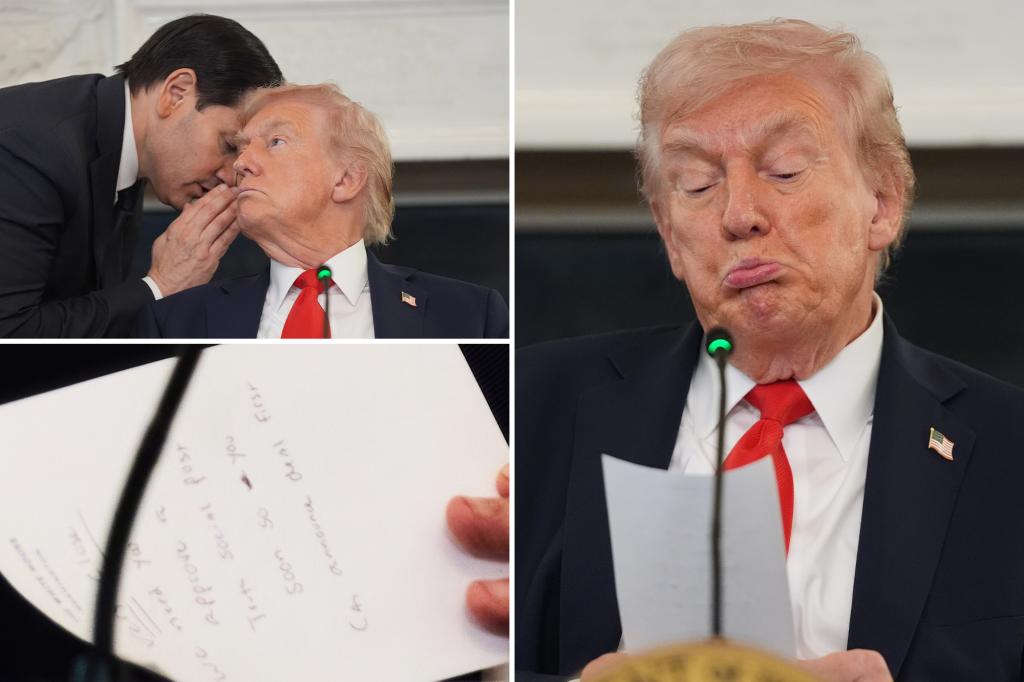 Início Notícias Fotos mostram a nota urgente de Marco Rubio para Trump antes do...