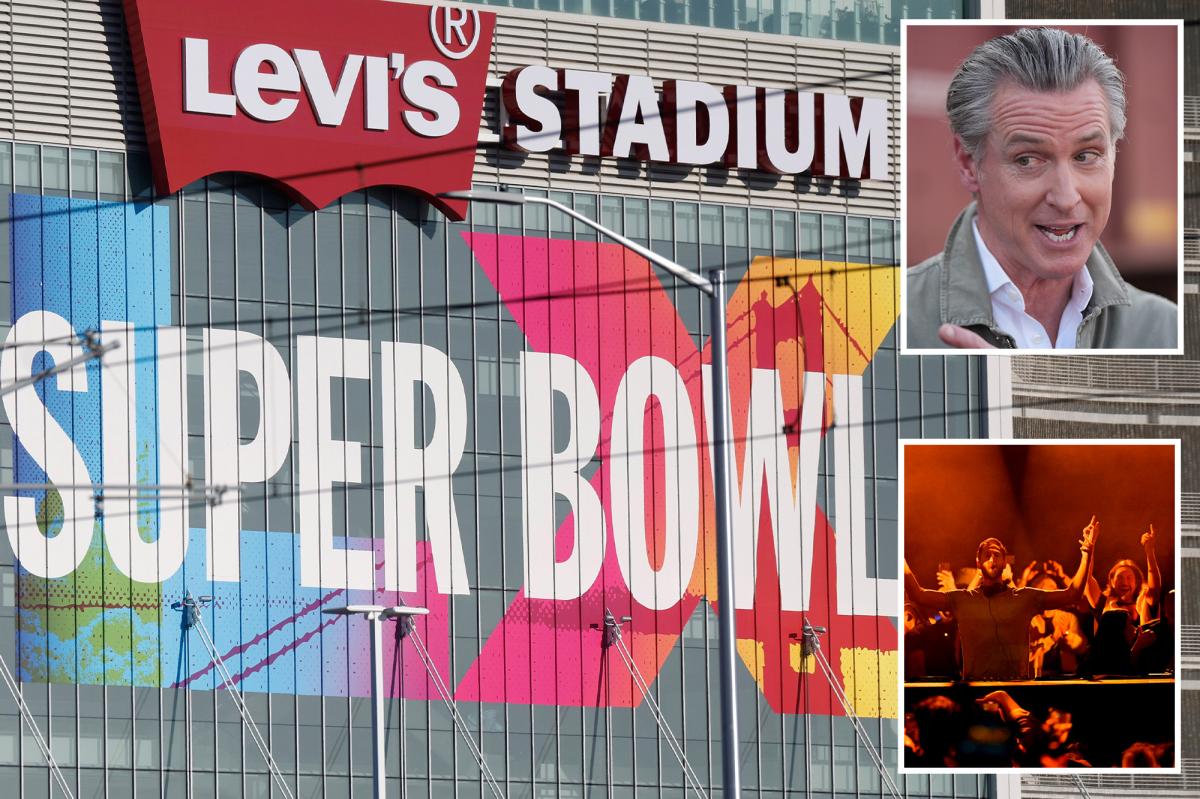 O governador Gavin Newsom estava na cena da festa pré-Super Bowl na noite de quinta-feira.