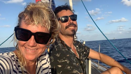 Os australianos Juliet Lamont e Hamish Paterson, a bordo do navio Wahoo como parte da flotilha global de Sumud. (A idade)