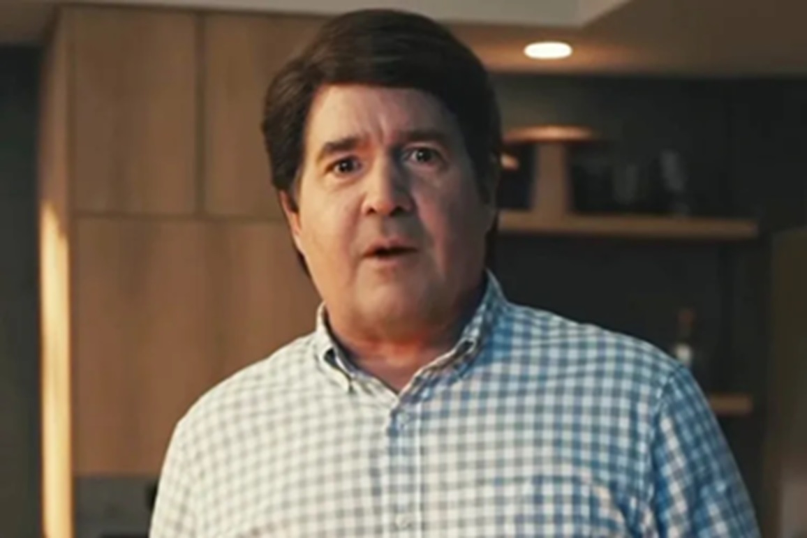 No vídeo, Fieri aparece barbeado e quase agressivamente polido, vestindo uma camisa xadrez de botão e calças cáqui, com seu cabelo loiro espetado característico substituído por um estilo castanho bem repartido que não pareceria deslocado em uma seguradora de nível médio.