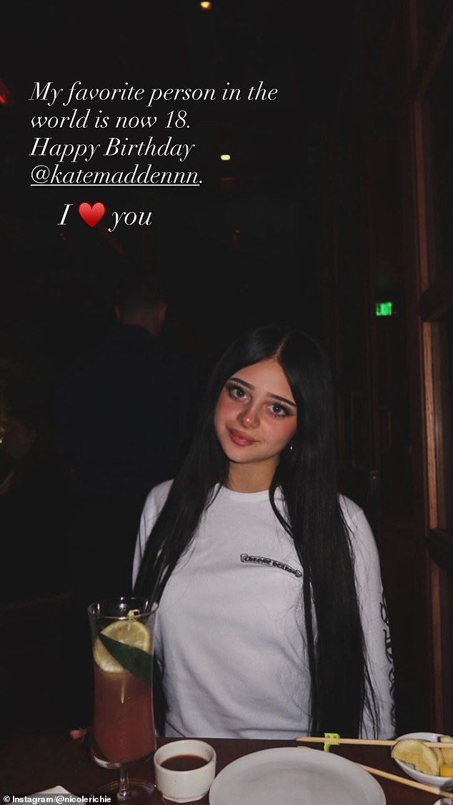 ‘Minha pessoa favorita no mundo agora tem 18 anos. Feliz aniversário @katemaddennn. Eu (emoji de coração) você”, escreveu Nicole na foto.