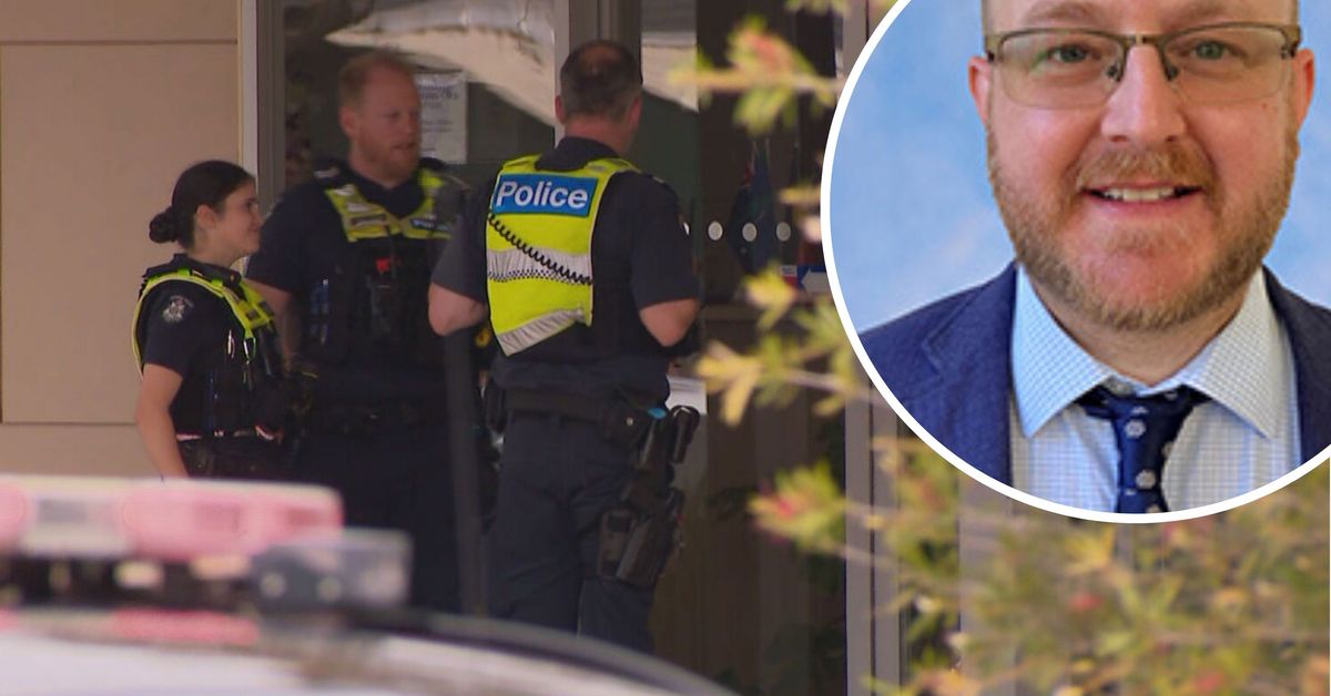 A polícia invadiu o Keysborough Secondary College, no sudeste da cidade, por volta das 15h de ontem, após relatos de que um homem de 43 anos foi ferido em um esfaqueamento.