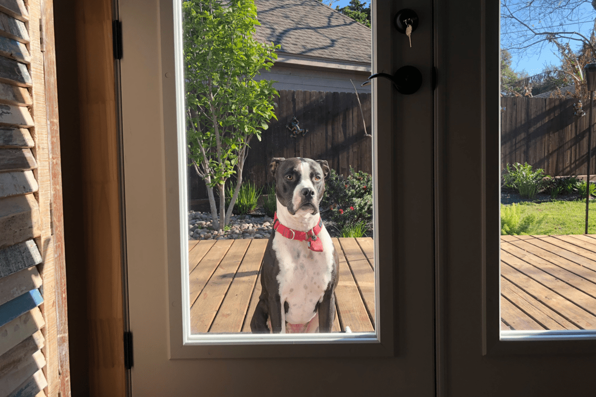 Katelyn (@katelynp512) postou um TikTok de sua convidada peluda frequente, Khloe, pacientemente do lado de fora de sua casa antes do nascer do sol. O clipe, que mostra o cachorro grande esperando docemente na porta, foi visto 356.900 vezes e recebeu 43.400 curtidas.