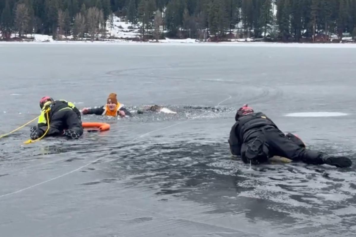 Oficiais da Unidade Marinha do Gabinete do Xerife do Condado de King e do Departamento de Polícia de Mercer Island estavam ensaiando resgates aquáticos em Fish Lake, nas Montanhas Cascade, quando um dos policiais viu um homem cair no gelo.