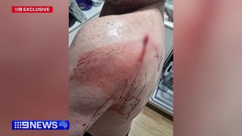 (Nove)Chris e seu filho adolescente Angus ficaram com cortes. (Nove)