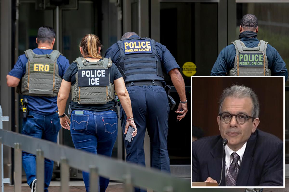 Quatro indivíduos vestindo coletes rotulados O ICE negou ter mentido intencionalmente, mas admitiu que as informações apresentadas estavam incorretas. Michael Nigro
