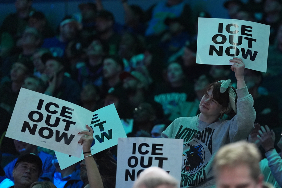 O Minnesota Frost, atual campeão da Professional Women’s Hockey League, fez um momento de silêncio antes do jogo contra o New York Sirens, com os torcedores quebrando o silêncio para gritar “Vá para casa, ICE” e “Foda-se, ICE”.