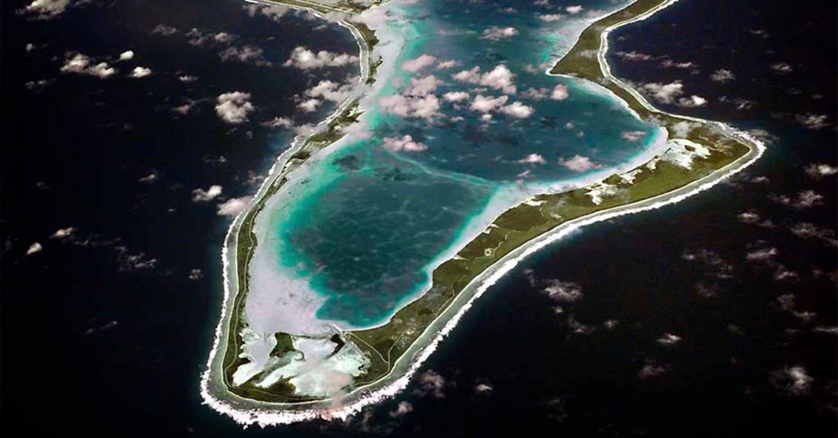 ARQUIVO – Esta imagem divulgada pela Marinha dos EUA mostra uma vista aérea de Diego Garcia. (Marinha dos EUA via AP, Arquivo) (AP)