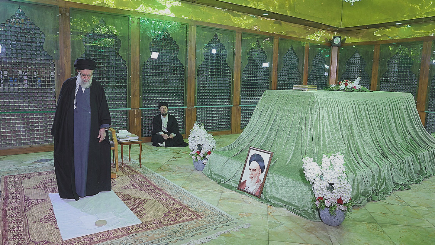 O líder supremo assistiu às orações no túmulo do fundador enquanto as autoridades emitiam novas ameaças contra os EUA e a Europa, disseram grupos de oposição. (Escritório do Líder Supremo Iraniano/Associated Press)